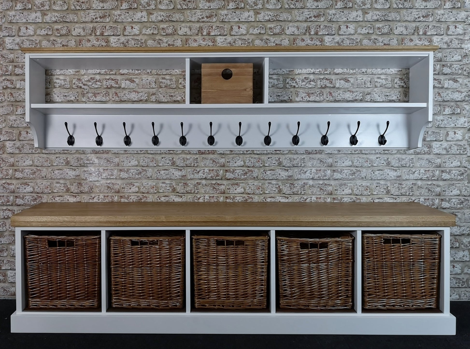 This statement hallway set is made from solid wood in Dorset. It is an eye catching addition to any hallway, boot room, entryway or cloakroom.